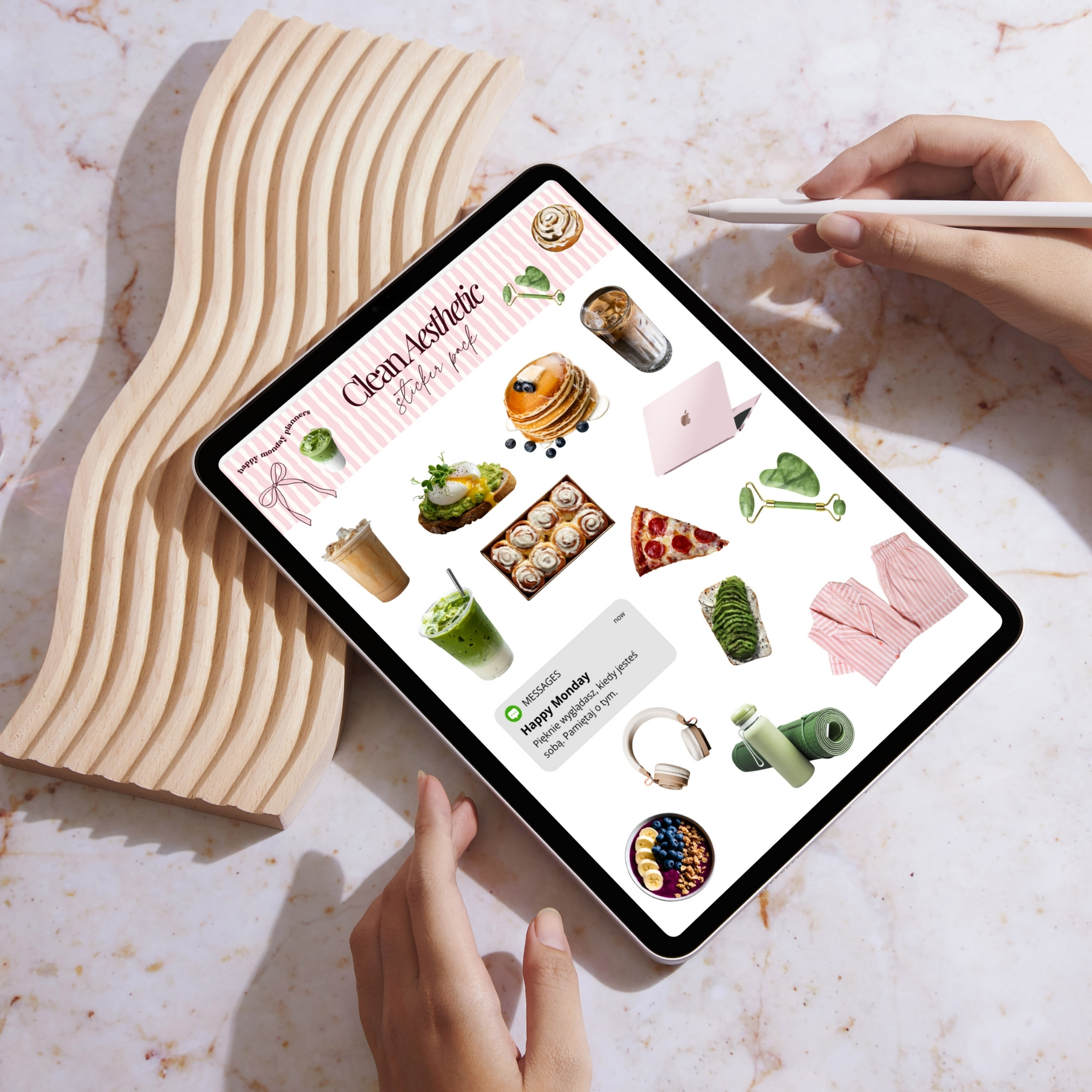 - Zestaw 50 naklejek cyfrowych o tematyce wellness, produktywności i zdrowych nawyków
