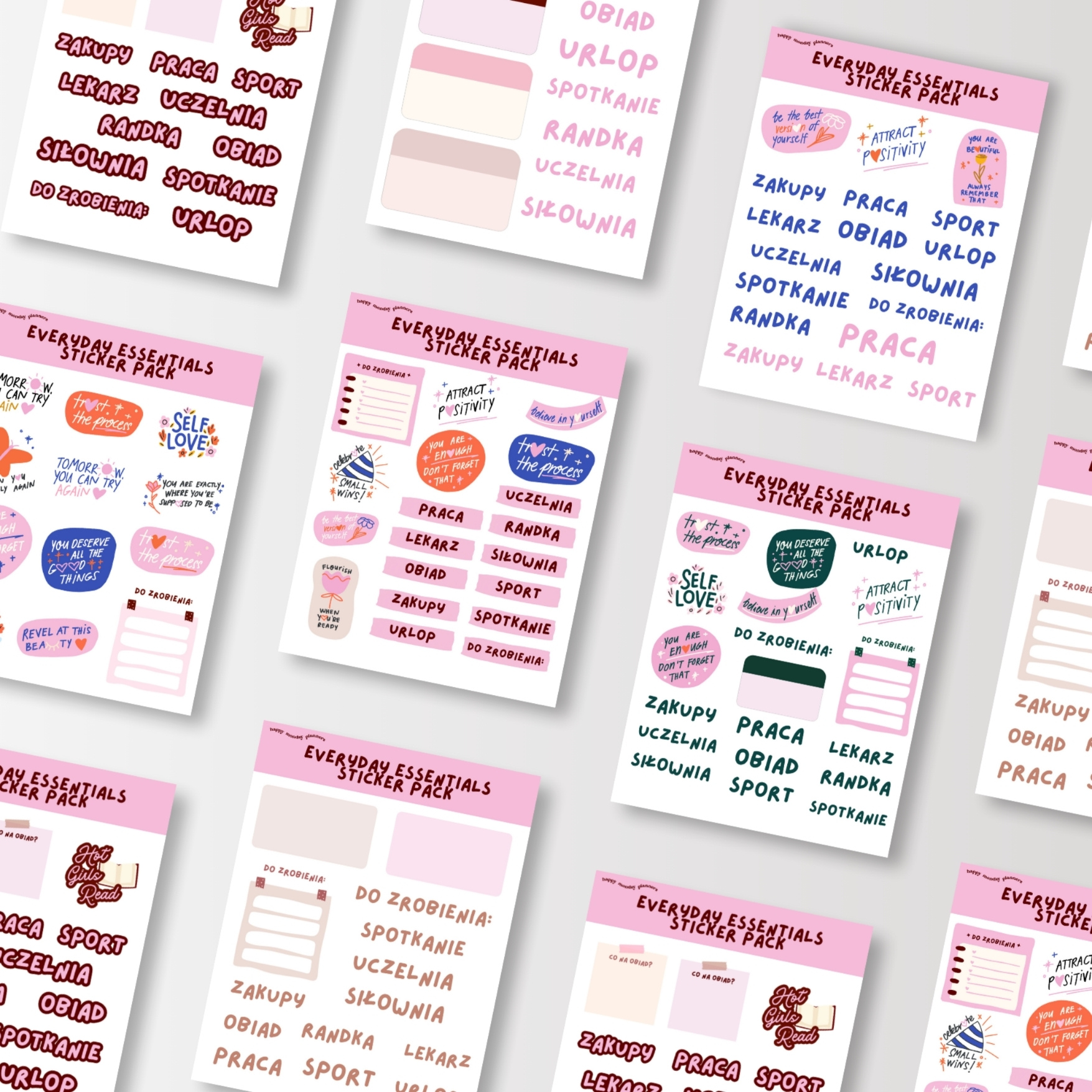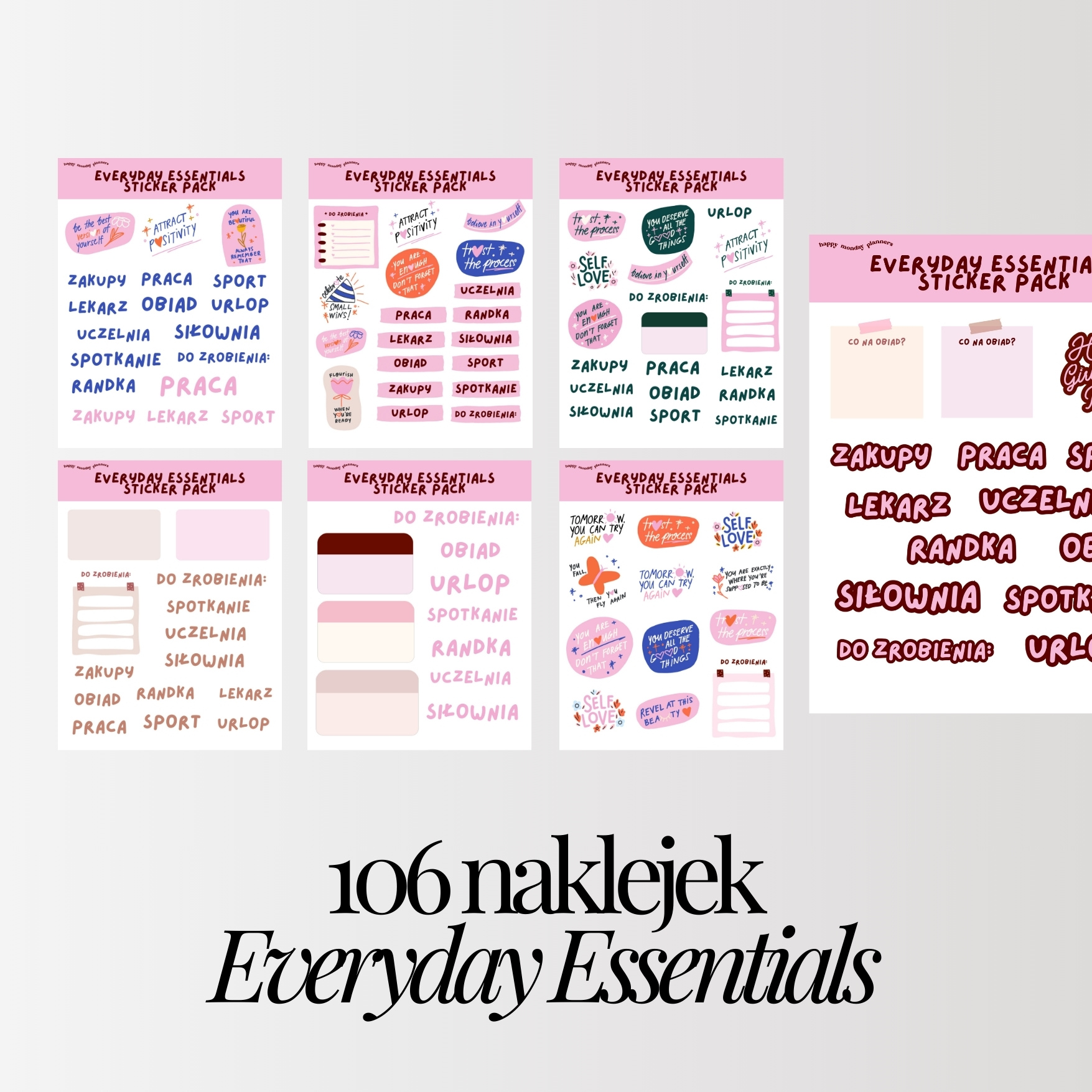- Zestaw 106 naklejek cyfrowych w tematyce Everyday Essentials