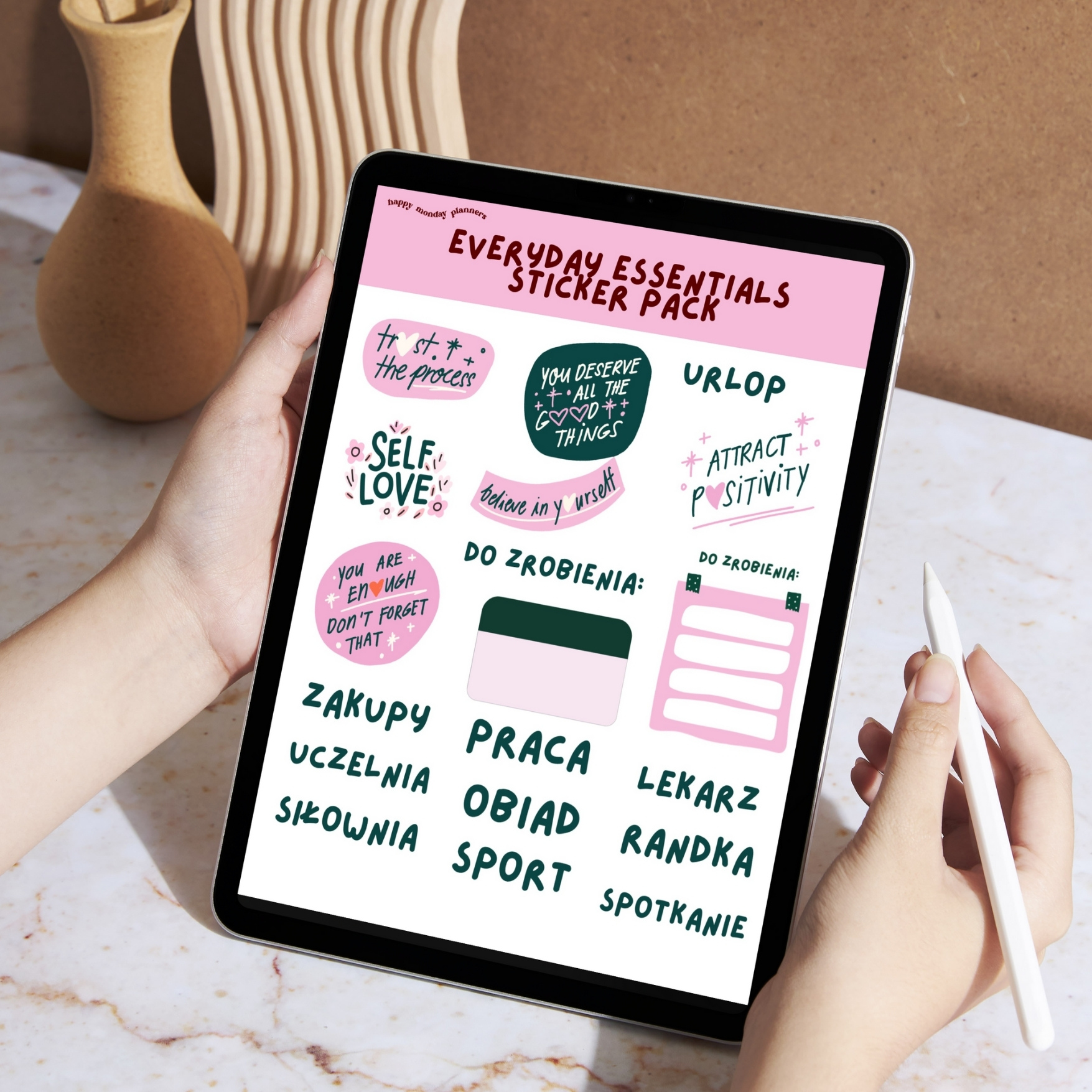 - Książeczka z naklejkami w formacie GoodNotes dla szybkiego i łatwego dostępu w aplikacji