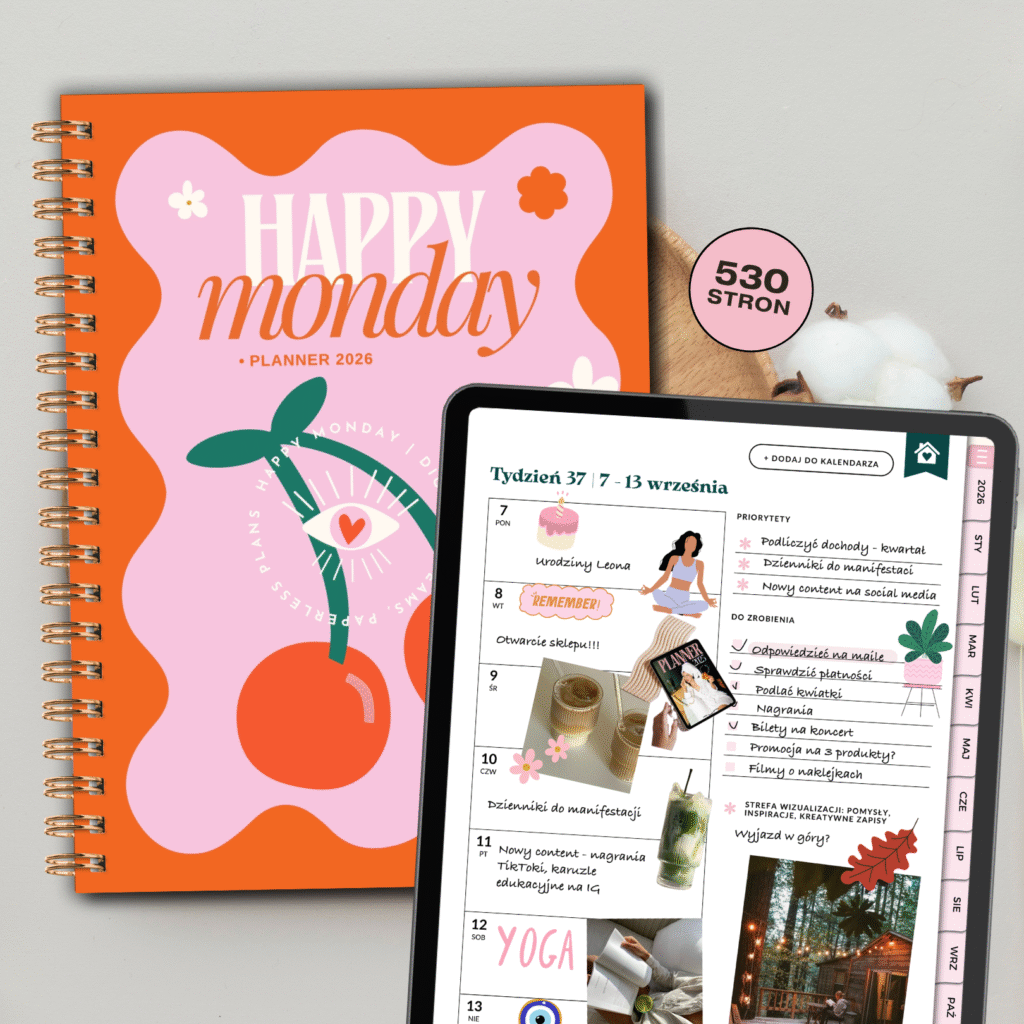 Planer Happy Monday to idealne narzędzie, które pomoże Ci skutecznie zarządzać czasem, celami i aspiracjami przez cały rok. Odkryj nowy poziom organizacji dzięki planerowi, który w stylowy sposób pomoże Ci zadbać o swoje zdrowie, samopoczucie i osiąganie wymarzonych celów! Zaplanuj swój najbardziej zorganizowany, produktywny i satysfakcjonujący rok z cyfrowym planerem Happy Monday!